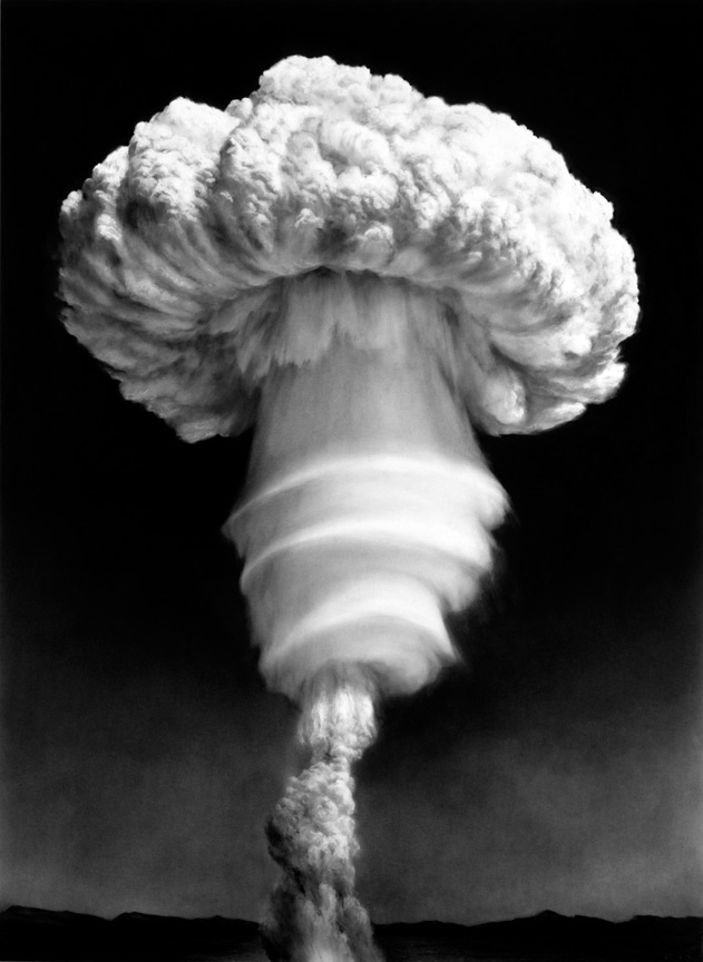 Baseado em fotografias, filmes e com um pouco de imaginação, o artista Robert Longo (Estados Unidos) faz desenhos realistas (ou podemos dizer desenhos hiper-realistas) da fumaça de grandes explosões – como as atômicas.