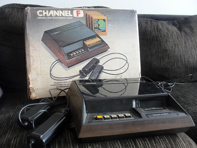 Videogame antigo – Fairchild Channel F (1976). Foi o primeiro videogame do mundo a utilizar o sistema de cartuchos.