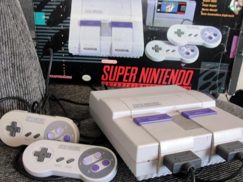 Videogame antigo – Super Nintendo (1991). Perto desta coleção repleta de raridades, o famosíssimo Super Nintendo acaba sendo peça obrigatória, mas não menos especial.