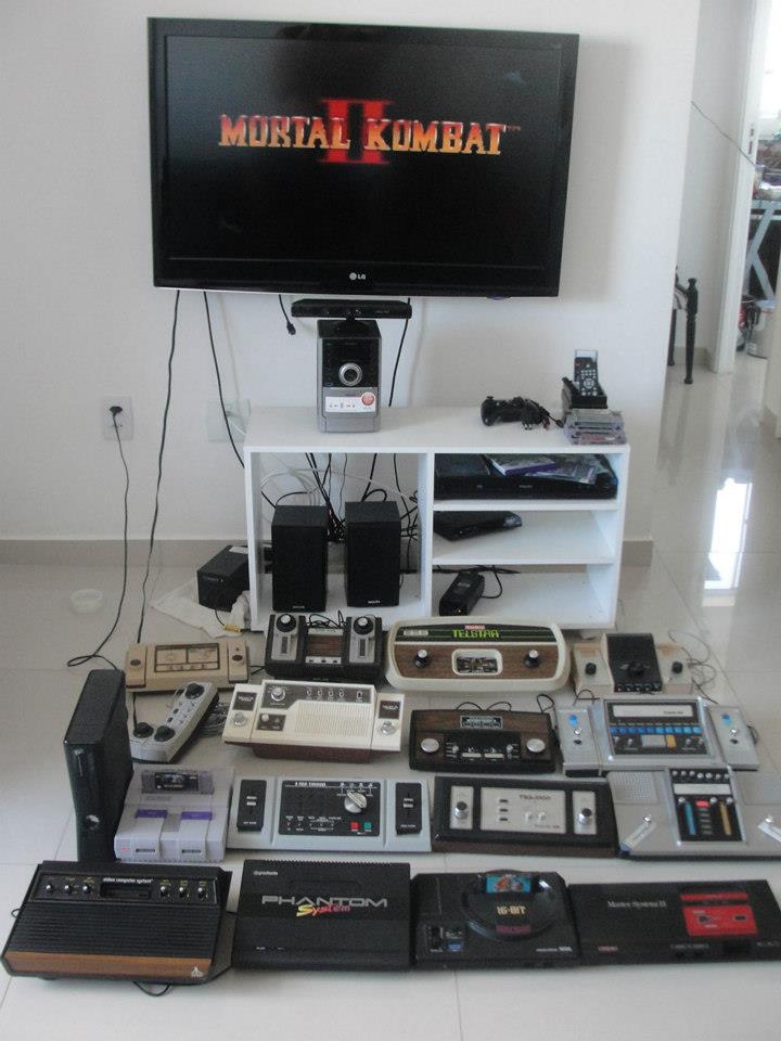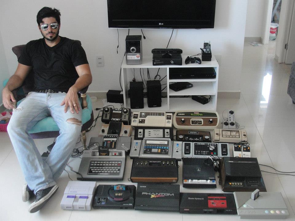 Tom possui 38 aparelhos e, provavelmente, está estudando a compra dos próximos videogames que integrarão sua coleção. Alguns deles são peças únicas em seu estado, outros não existem em outro lugar do Brasil a não ser na sua casa.