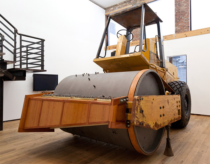Depois do virtuoso (hehehe) trator baterista, temos o rolo compressor transformado em “caixinha” de música!