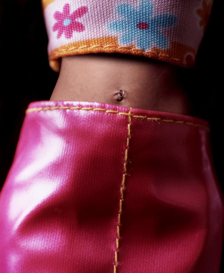 Nas capas de revistas, artistas gráficos manipulam as fotos em softwares, conferindo cintura fina e pele clara impecável à imagem. Como resultado, o corpo feminino torna-se uma réplica de uma boneca, e a essência da beleza natural na cultura popular americana é substituída pela fantasia. – analisa a artista