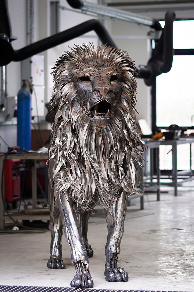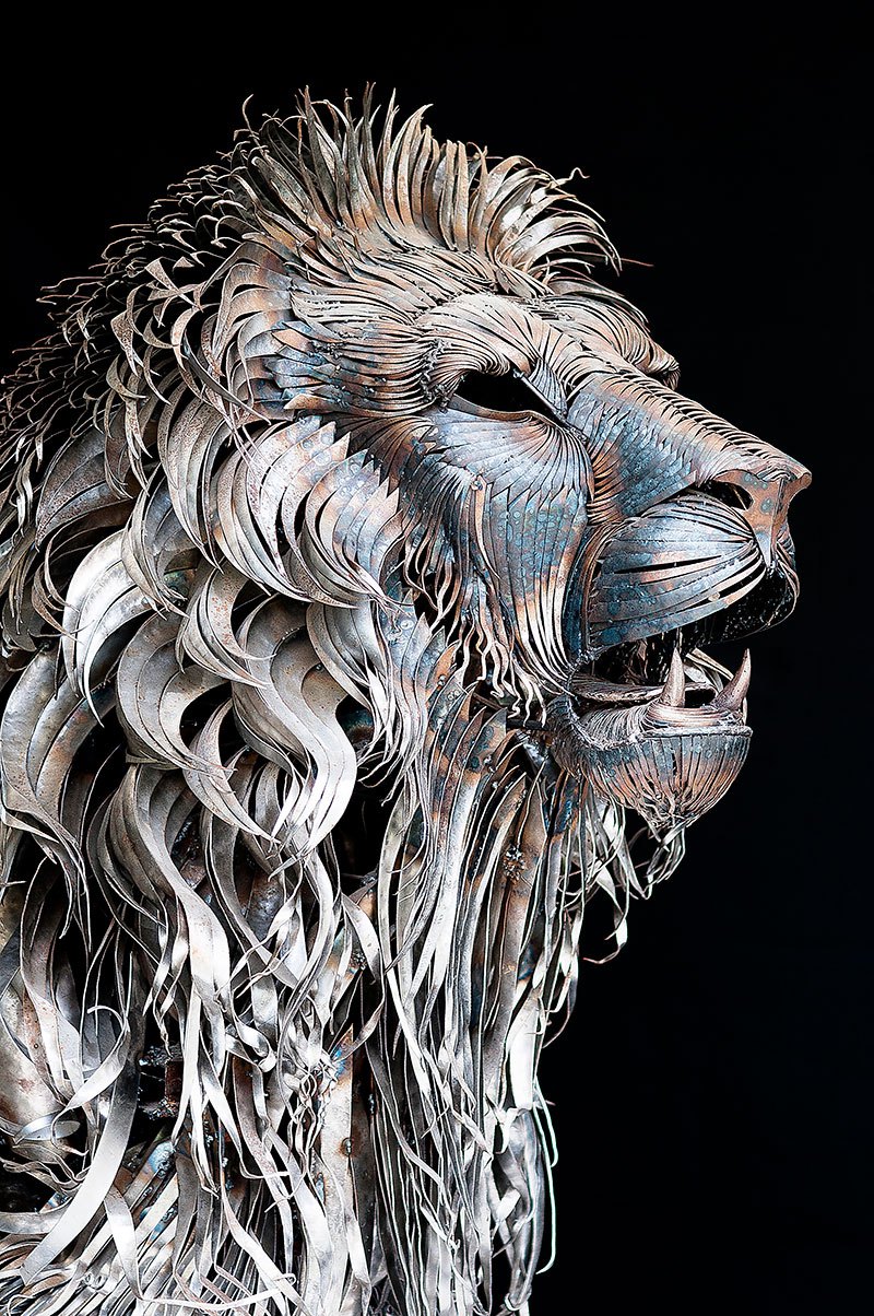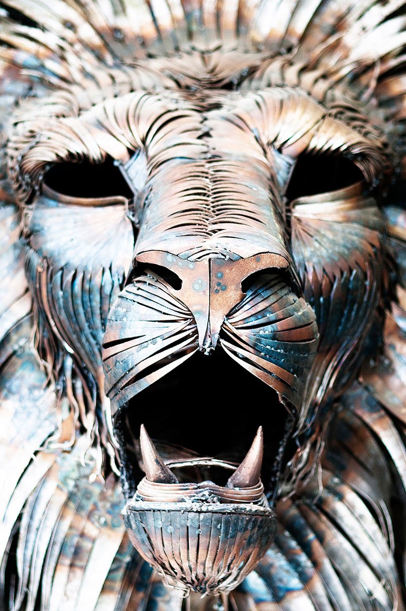 A versão em metal do rei da selva criada por Selcuk demorou 10 meses para ficar pronta. Para fazer o leão, ele cortou e martelou cada uma das peças, mas sabia que isso não seria um trabalho simples: “É preciso paciência e temos que saber a dor”, comentou o artista.