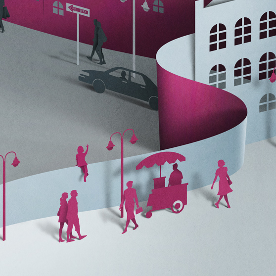 Eiko Ojala é um ilustrador e designer gráfico estoniano, que dá um novo significado à ilustração digital. Combinando cores, textura de papeis reais e uma aprimorada técnica de luz e sombra, ele cria ilustrações 3D que parecem se formar por recortes no papel.