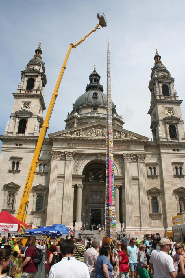A “obra” foi montada em frente à Basílica de Santo Estêvão. Além dos idealizadores, mais de cinco mil crianças em idade escolar participaram da construção.