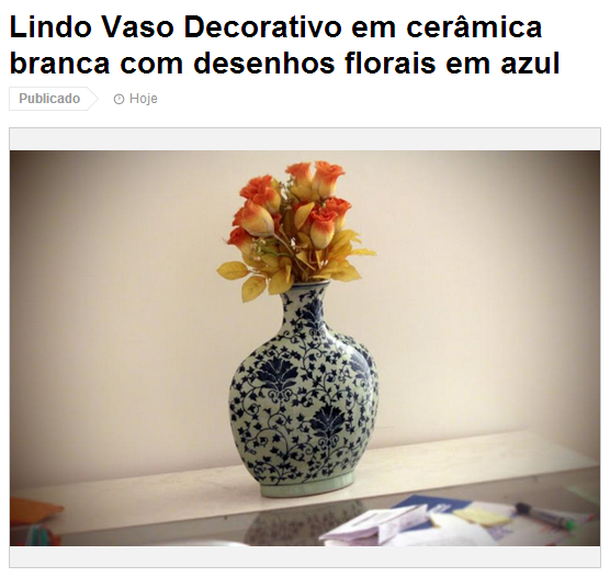 Como criar anúncios na OLX é de graça, realmente não há como sair perdendo. Então, escolhi esse belo vaso de porcelana da imagem acima para começar. É uma peça legal, mas depois que o “Esqueminha” – nosso gato de estimação – apareceu, o vaso teve que ir pra dentro do armário sob ameaça de virar um amontoado de cacos nos rolês noturnos do bichano.