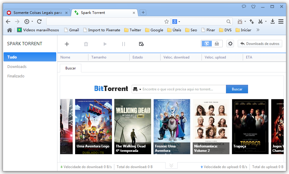 Imagine se você pudesse simplesmente pesquisar por Torrents, clicar no link e baixar o arquivo final sem sair do navegador, como se estivesse salvando uma simples imagem. Essa é a proposta do gerenciador de Torrents embutido no Spark. Ao acessá-la, é possível realizar uma busca e iniciar o download tudo no mesmo lugar. Muito prático!