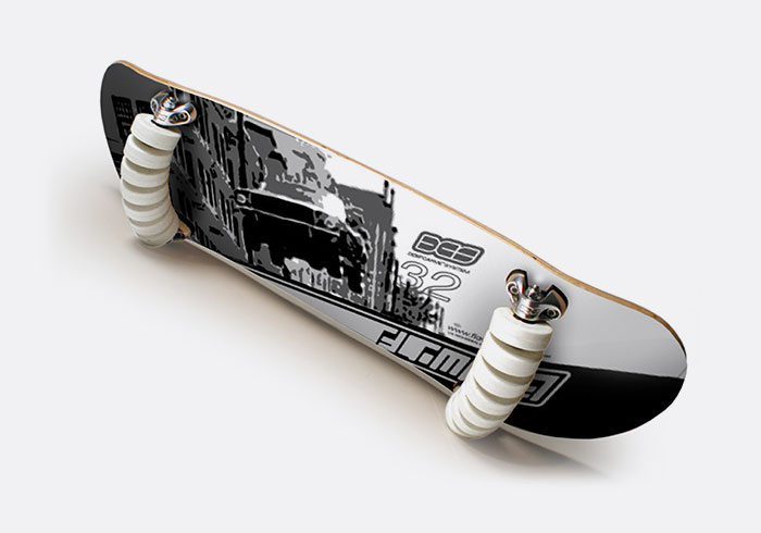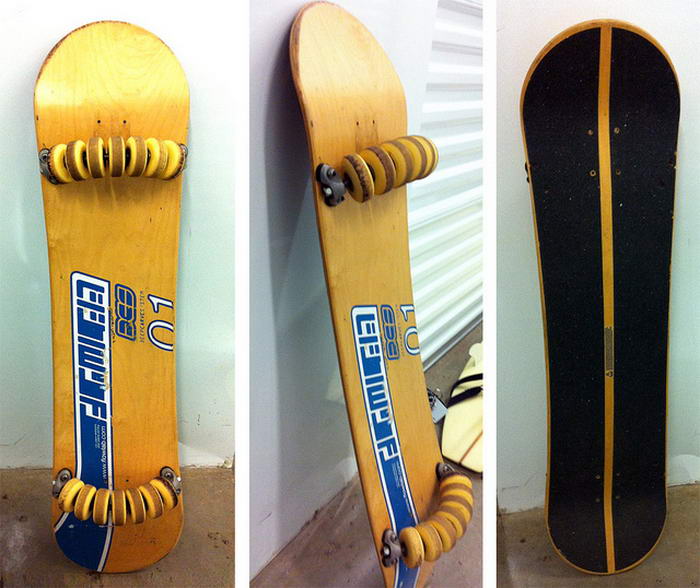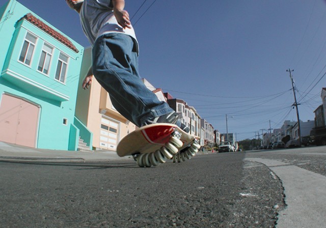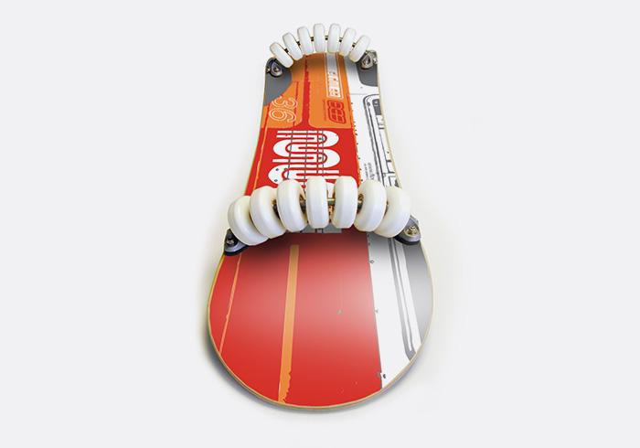 Conhecido como Flowboard, o modelo de skate com 14 rodas (7 em cada truck) faz com que a experiência de deslizar no asfalto se assemelhe ao surfe ou ao snowboard. Um skate comum pode ser inclinado cerca de 25 graus, enquanto o Flowboard – com suas rodas extras – alcança incríveis 45 graus.