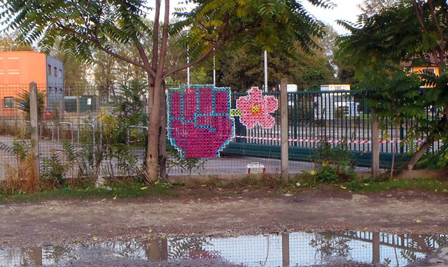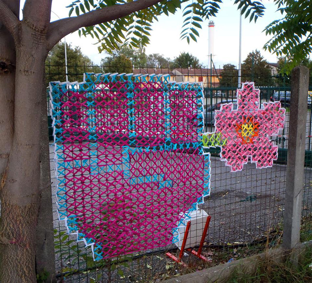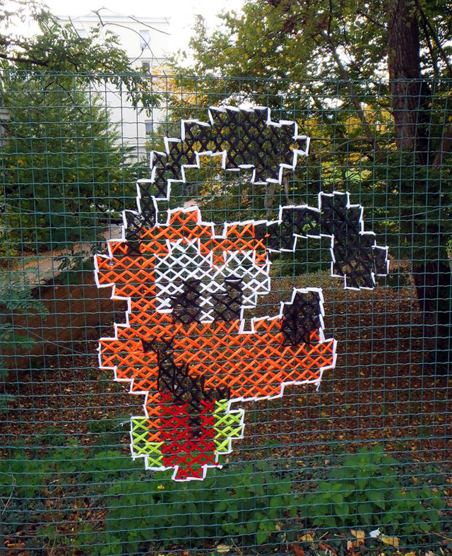 Fonte: http://somentecoisaslegais.com.br/arte/artista-de-rua-usa-o-bom-e-velho-ponto-cruz-para-bordar-grades-da-cidade